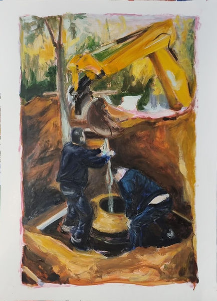 הדבר הבא אתרי בניה, המקומות הפרומים בעיר, מלאים בסימנים של מה שהיה ומה שהולך להיות. חללים שהם כבר לא ועוד לא, והם משתנים כל הזמן. בינתיים חוקי המשחק בהם שונים. הם מאפשרים מצבים ומפגשים שלא קורים בחיים המסודרים שלנו. כשיגיעו החלונות והדלתות כבר לא ישבו לאכול על הרצפה, התהום תסגר, הכל יהיה לפי תקן וכולם יתלבשו יפה. עד שזה יקרה – אני מציירת.